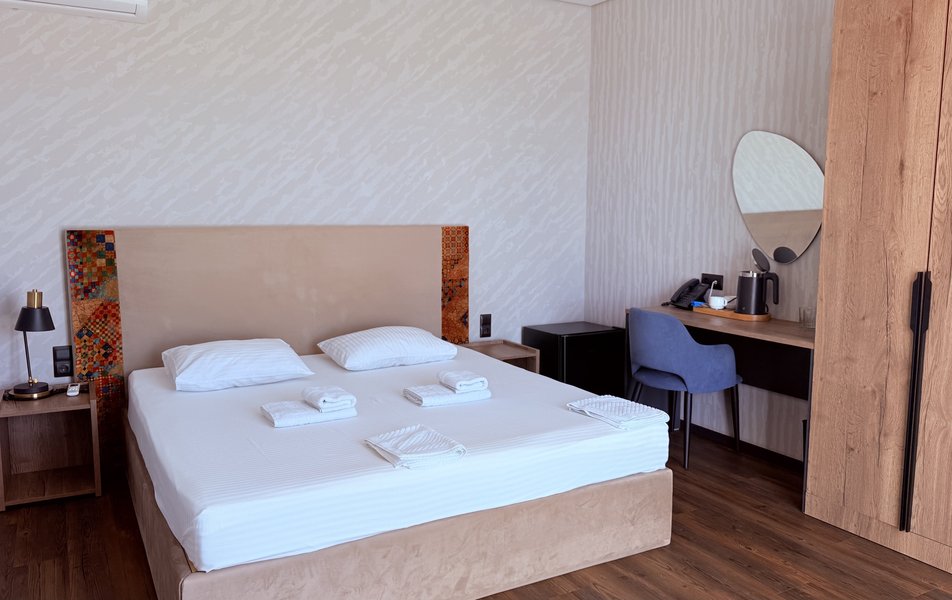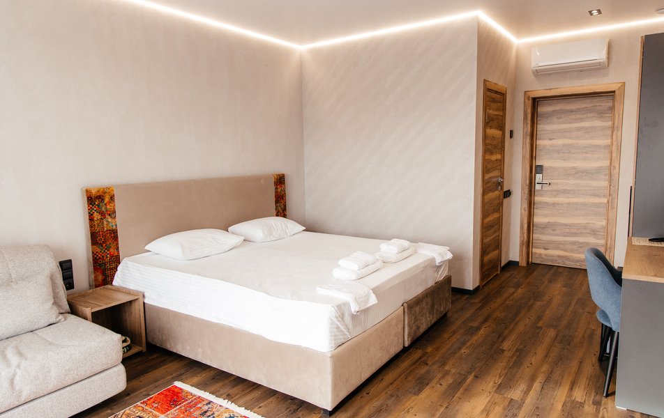 Отель находится в непосредственной близости от главной достопримечательности региона — исторической крепости Шамиля, что делает его идеальной базой для экскурсий. Гостям предлагаются уютные однокомнатные номера с современным дизайном и панорамным остеклением. Каждый номер оснащен персональным санузлом, кондиционером, ЖК-телевизором, электрочайником и беспроводным интернетом. Часть номеров имеет просторные балконы, откуда открываются завораживающие виды на горные массивы.