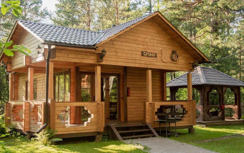 Отель занимает благоустроенную территорию, на которой разместились 5 деревянных домиков, выстроенных из соснового и кедрового бруса. В домах есть все необходимое для комфортного пребывания: кухня, оснащенная бытовой техникой, санузел с душевой кабиной, уютная спальная зона.