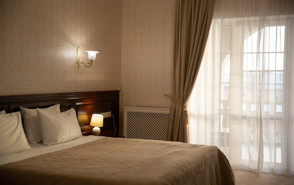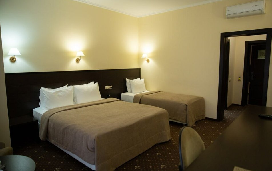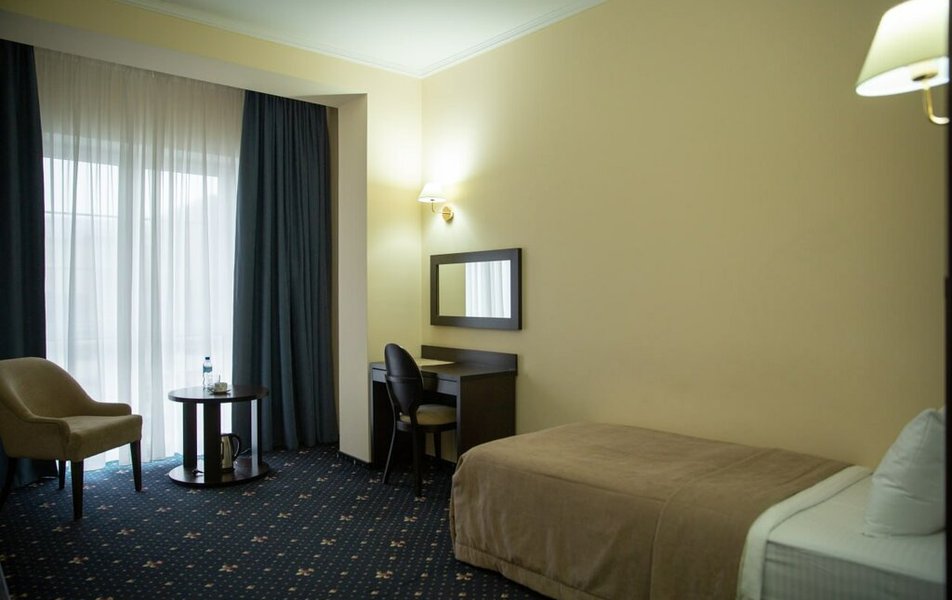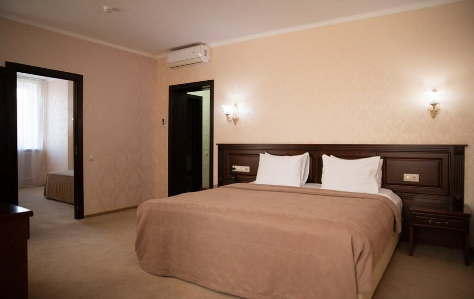 Для тех, кто ценит пространство и элегантность, отель подготовил номера люксовой категории. Это двухкомнатные номера, рассчитанные на двух или трёх гостей, где предусмотрены удобные раскладные кресла. Вершиной же комфорта и романтики являются номера категории Junior Suite. Здесь гостей ждет просторная двуспальная кровать размера King size, собственный санузел с ванной и душем, а также приятные мелочи, создающие атмосферу домашнего спа: мягкие халаты, пушистые тапочки и качественные туалетные принадлежности. Особая гордость — номера Junior Suite с собственной террасой, откуда открывается бескрайний, завораживающий вид на степные просторы. Звукоизоляция в каждом номере выполнена на высшем уровне, гарантируя гостям крепкий и здоровый сон после насыщенного дня.