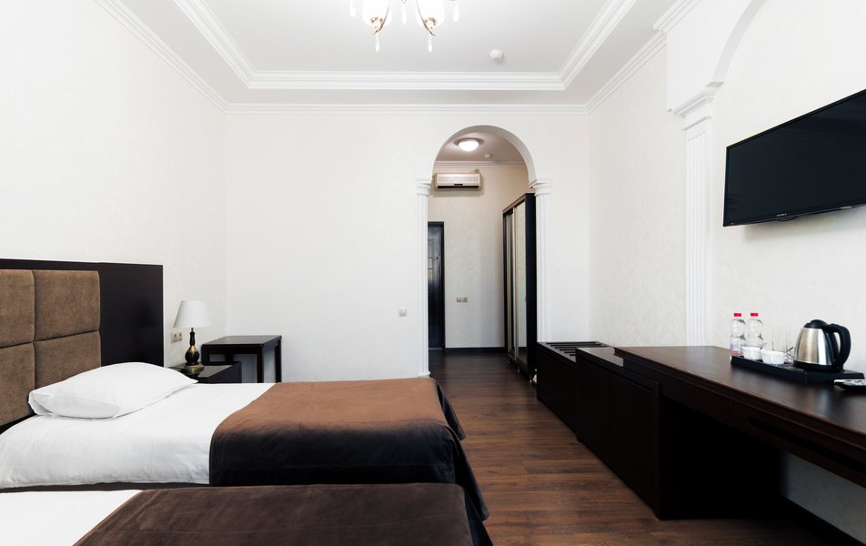 В распоряжении гостей находятся номера различных категорий, спроектированные с учетом современных требований к эргономике пространства. Интерьеры выполнены в сдержанной цветовой гамме, функциональная мебель и качественное сантехническое оборудование обеспечивают комфортное пребывание.