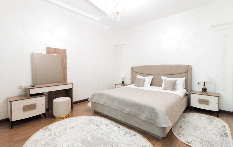 | Мебель | вешалка зеркало кровать двуспальная прикроватные тумбочки стол стул шкаф |