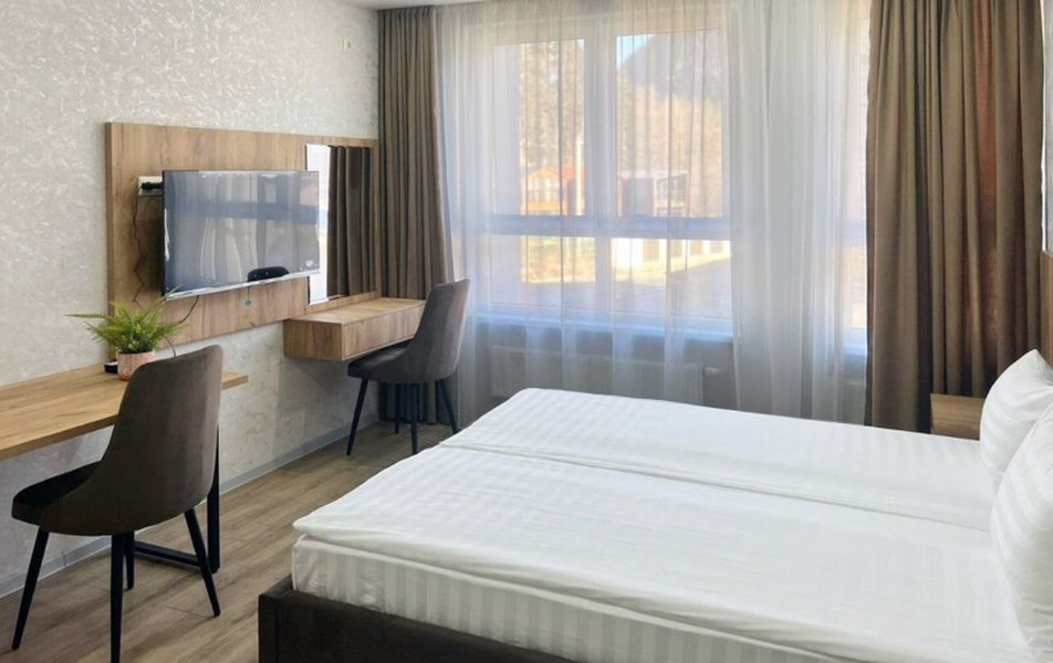 Внутреннее убранство номерного фонда — отдельная гордость «Актау». Каждый апартамент стал результатом вдохновенной работы дизайнеров. Здесь царят современные стилистические решения, качественные материалы и безупречный вкус, создающие атмосферу легкой роскоши и уюта. Пространство продумано до мелочей: гостей ждут не просто кровати и мебель, а полностью оборудованное жилье со всем необходимым для долгого и комфортного проживания. Отдельного упоминания заслуживают огромные окна, из которых открываются великолепные виды — то на заснеженные пики Кавказского хребта, то на спокойную зелень леса, превращающие каждый вечер в немой спектакль живой природы.