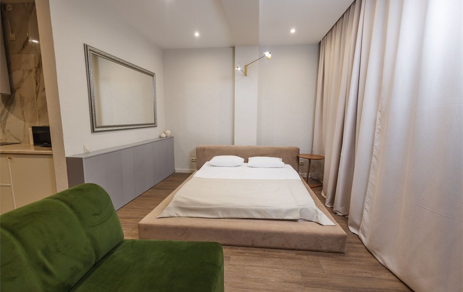 Отсюда можно отправиться к Чучхурскому водопаду, пойти на прогулку по Гоначхирскому ущелью или заказать столик в уютном кафе с видом на горы. Рядом с апартаментами — вся необходимая инфраструктура: магазины, рестораны, банкоматы и пункты проката, но при этом царит удивительная тишина, нарушаемая лишь пением птиц и шелестом ветра в кронах деревьев.
