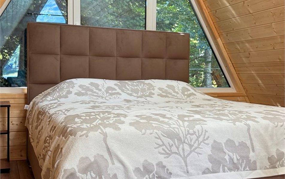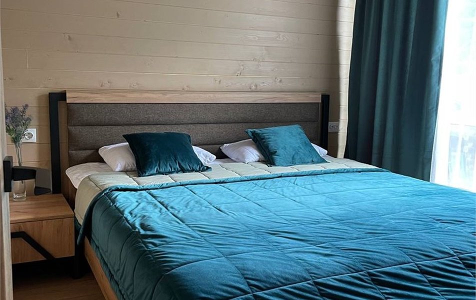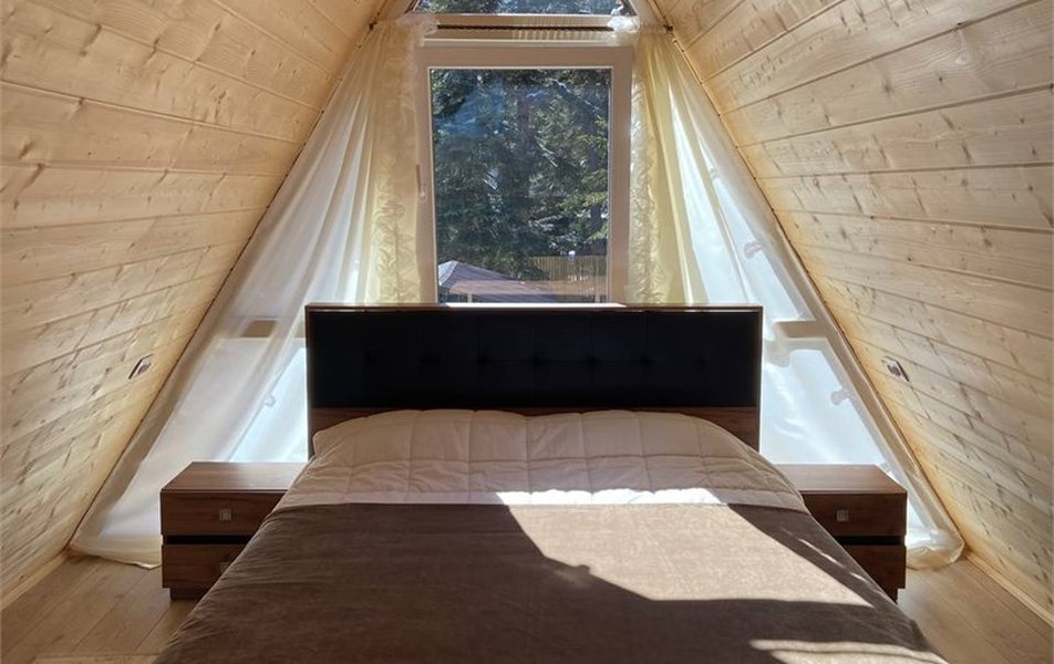 Размещение организовано в отдельных шале и коттеджах, рассчитанных на 4–7 человек. На первом этаже располагаются гостиная зона с раскладными диванами, мини-кухня с холодильником, микроволновой печью, мультиваркой, электрочайником, набором посуды и обеденный стол. На втором этаже обустроена спальная зона с двуспальной кроватью. В каждом доме есть отдельная душевая комната. На цокольном этаже находится техническая зона со стиральной машиной, а также место для хранения спортивного инвентаря.