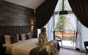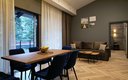 Комплекс занимает территорию площадью 1,3 гектара и включает в себя современные коттеджи с панорамными окнами. В коттеджах стильный интересный интерьер, предусмотрены собственная мини-кухня, ванная комната, терраса. Номера укомплектованы всей необходимой техникой – везде есть телевизор с плоским краном, электрочайник, кофемашина, фен, микроволновая печь, холодильник.