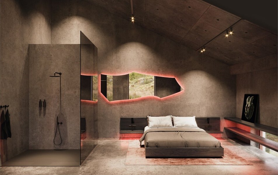 | Мебель | вешалка зеркало кровать двуспальная прикроватные тумбочки стол стул шкаф |