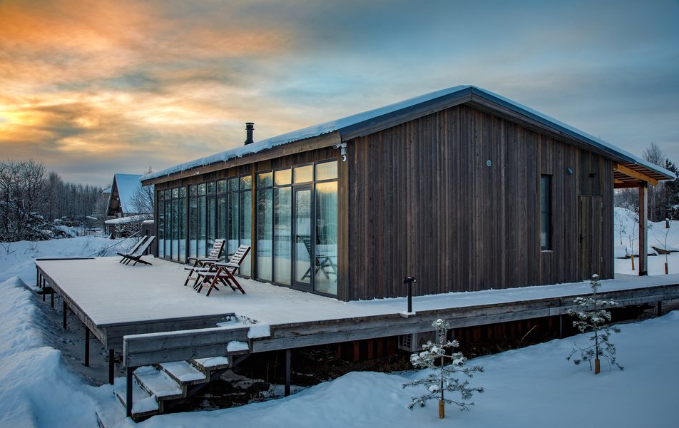 Инфраструктура комплекса заточена под неторопливый отдых и гастрономические впечатления. Ресторан с московским шеф-поваром удивляет авторским прочтением северной кухни, а его панорамные окна обращены прямо к озеру. Для проведения мероприятий предусмотрен событийный зал с такой же впечатляющей видовой характеристикой. Ландшафт вокруг домов спроектирован так, чтобы создать ощущение тихих уединённых двориков: холмы и валуны защищают от ветра и посторонних взглядов. Центральное здание с живой крышей буквально растворяется в окружающей природе, не нарушая естественного пейзажа.