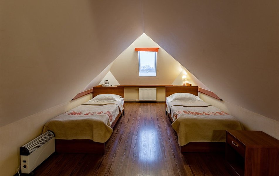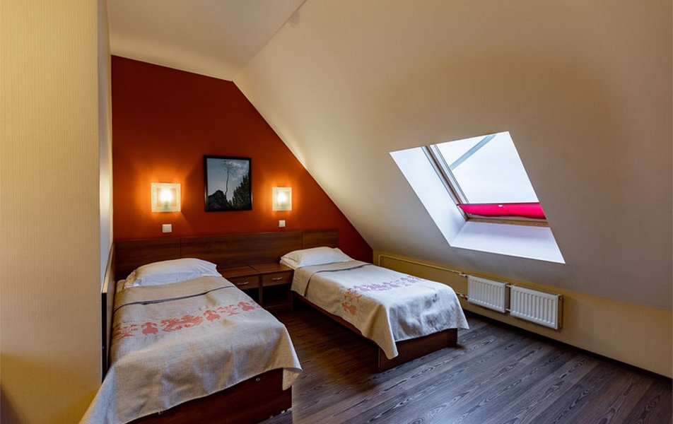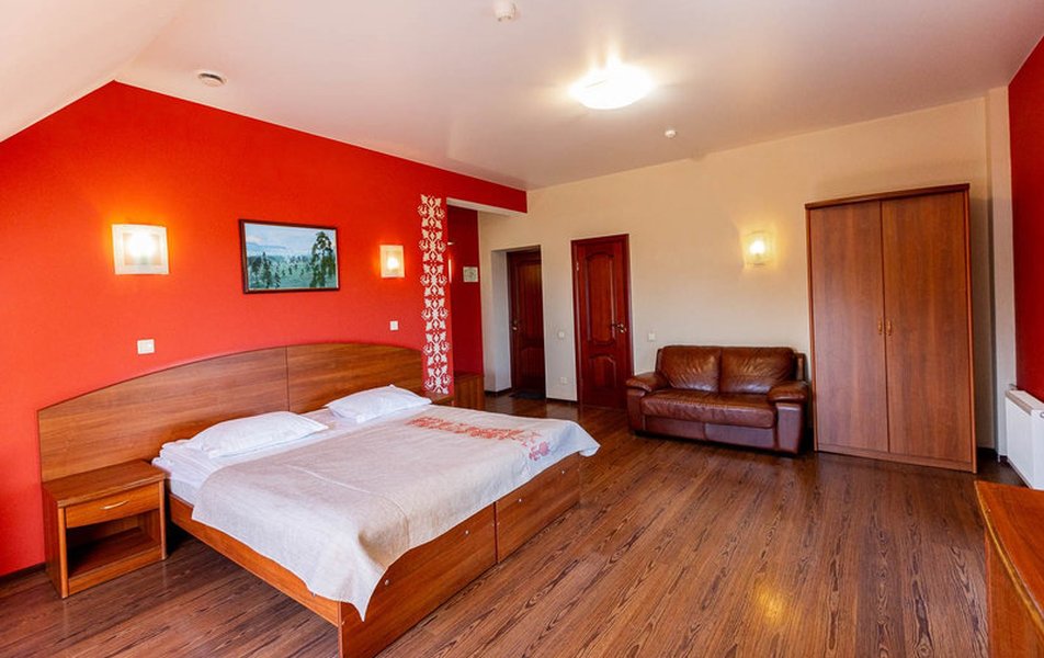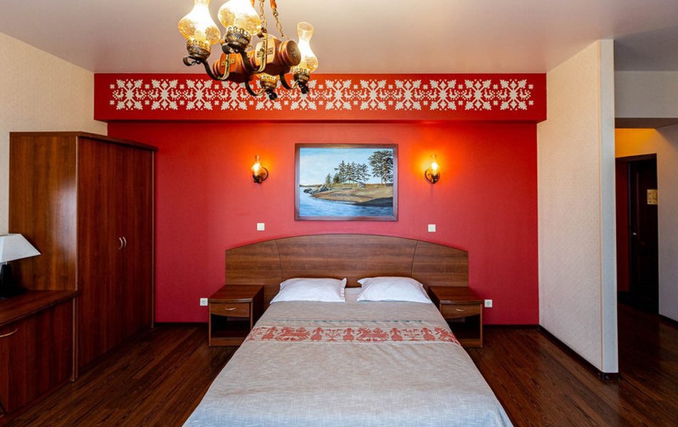 Номерной фонд отеля включает различные категории: от стандартных двухместных номеров до просторных студий, семейных и мансардных апартаментов, рассчитанных на компанию до пяти человек. Каждый номер оформлен с использованием элементов карельского декора: традиционные орнаменты на текстиле, деревянные светильники ручной работы и живописные полотна с северными пейзажами. Из большинства номеров открывается панорамный вид на озеро. Все комнаты оснащены телевизором, мини-холодильником, чайником, собственной ванной комнатой с душем или ванной и Wi-Fi.