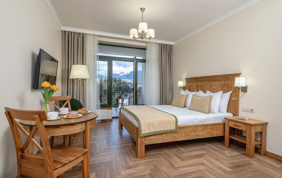 В отеле работают ресторан европейской кухни с панорамными видами на Алушту и террасой, и лобби-бар, где всегда можно выпить чашечку бодрящего кофе. На террасе отеля обустроен открытый подогреваемый бассейн с шезлонгами, доступный в теплое время года. В распоряжении гостей спа-комплекс с финской, травяной саунами, русской парной, джакузи, хамамом, ледяной купелью, также есть соляная пещера и тренажерный зал. На ресепшене можно заказать трансфер, приобрести экскурсии или арендовать машину, а для автовладельцев на территории отеля предусмотрен крытый, охраняемый паркинг.