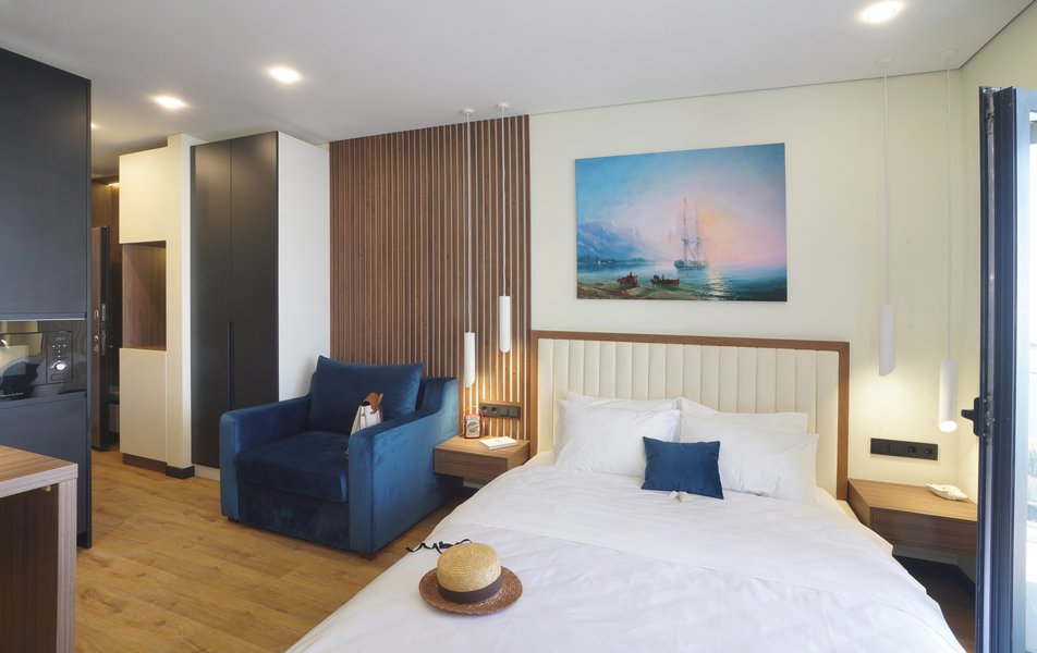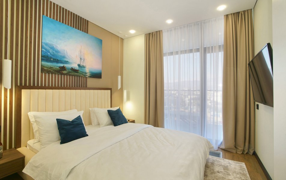 Отель разместился в современном жилом здании, входящем в состав апарт-комплекса бизнес-класса «Крымская Резиденция». В распоряжении гостей стильные комфортабельные апартаменты, апартаменты все они имеют выход на собственную террасу, из панорамных окон открываются виды на горные хребты, морские пейзажи и зеленые рощи. В каждом номере оборудована мини-кухня с холодильником, электрочайником и микроволновой печью и набором посуды, в ванной комнате – душевая кабина, стиральная машина, фен, а для гостей подготовлены косметические наборы. К услугам отдыхающих – зона барбекю, подземный паркинг.
