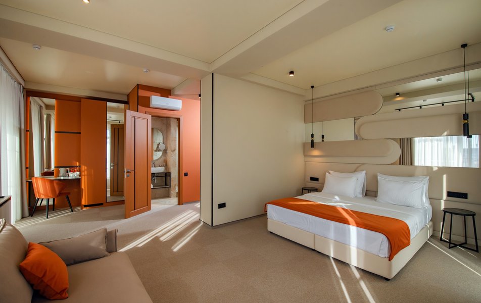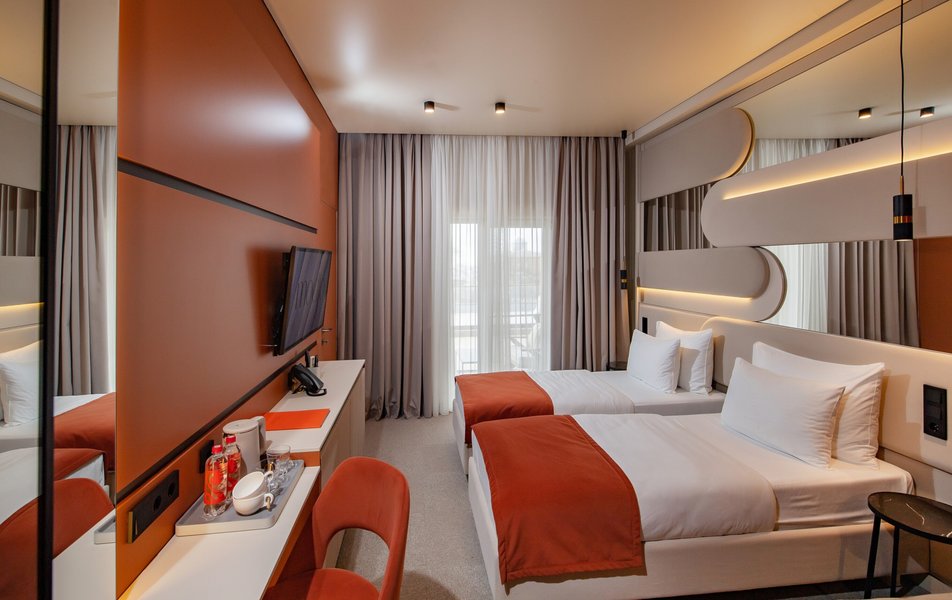 Питание 24/7 предоставляется гостям в ресторане «Modjo», который занимает почти весь первый этаж отеля, а также в лаундж-зоне Pool бара и круглосуточном кафе, которые уютно расположились возле нашего шикарного открытого бассейна.