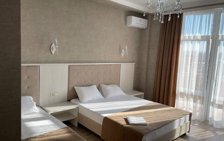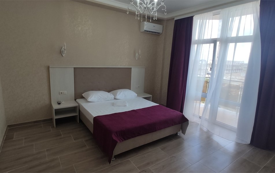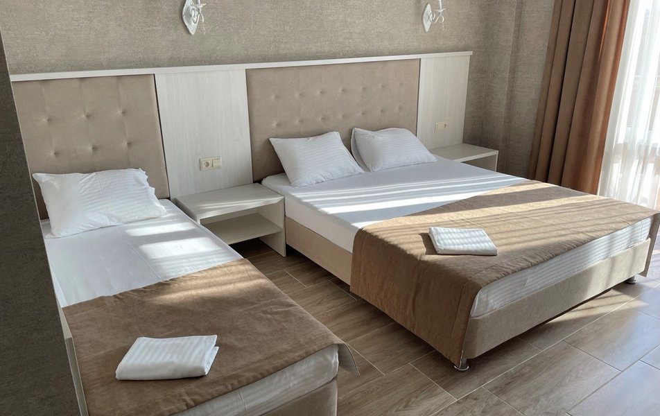 Трехэтажный корпус разместился в 450 метрах от черноморского песочного пляжа. В распоряжении гостей однокомнатные и двухкомнатные номера со всеми удобствами. В комнатах светлый приятный интерьер, установлен кондиционер, есть ЖК-телевизор, балкон или терраса. Везде предусмотрен персональный санузел с душевой кабиной и феном.
