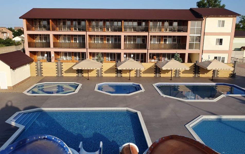 Комплекс занимает ухоженную закрытую территорию, окруженную зелеными насаждениями. Здесь много цветов, декоративных кустарников и тенистых деревьев, создающих прохладу в жаркий день. Территория охраняется и находится под видеонаблюдением, что обеспечивает безопасность и спокойствие гостей.