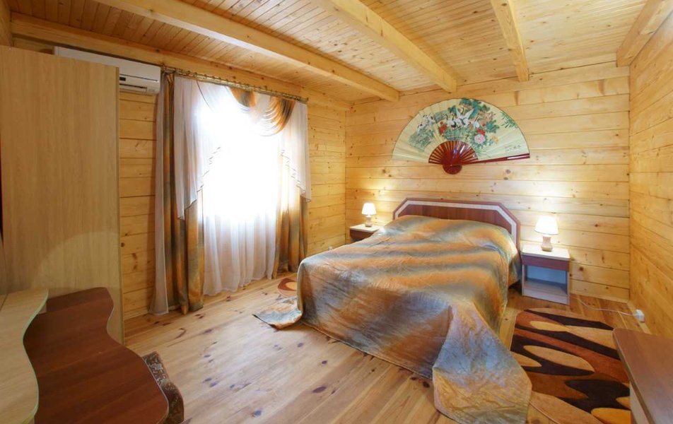 В каждом из них на 1 этаже находится 3-комнатный номер, на втором этаже 2-комнатный номер. В одном коттедже есть два однокомнатных номера (на первом и в втором этаже) с отдельными входами.