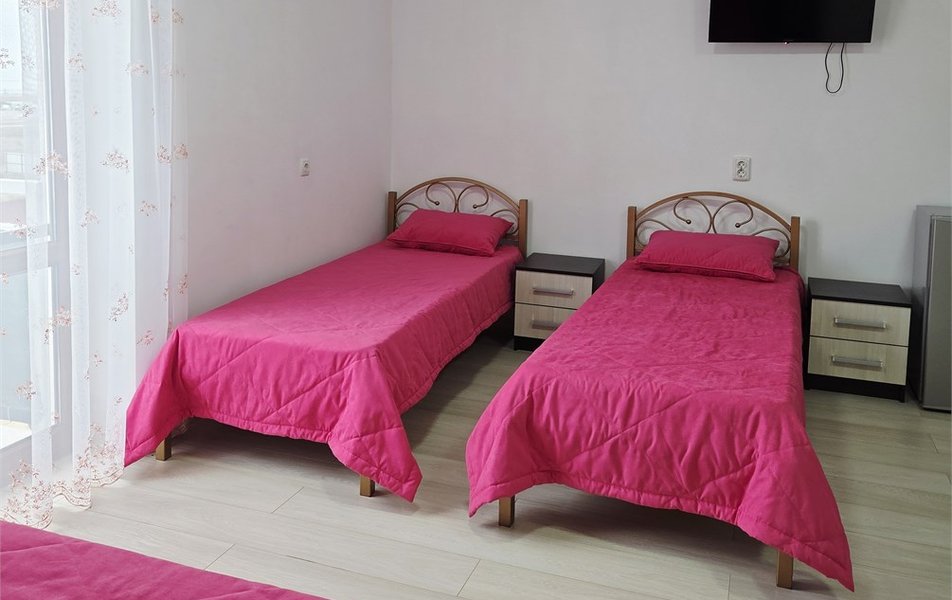 В гостевом доме представлены комфортные номера различных категорий. Каждый номер оснащен качественной мебелью, ортопедическими матрасами, телевизором, холодильником, сплит-системой, а также собственным санузлом с душевой. Для каждого гостя подготовлены комплект постельного белья и полотенца. На всей территории работает беспроводной интернет.