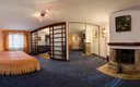 Трехэтажный номер площадью 210 кв.м.: 1 этаж – гостиная (имеется раскладной диван) и буфет; 2 этаж – большая спальня; 3 этаж – спальня или детская. Веранда с садовой мебелью. В номере камин на дровах твердых пород деревьев (дуб, граб, бук).