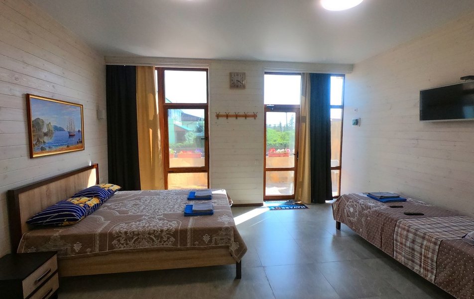 Гостевой дом «Navarros» — это небольшой комплекс всего на несколько номеров, что гарантирует камерную атмосферу и отсутствие лишнего шума. Каждый номер оформлен с качественным ремонтом, где продумана каждая деталь для комфортного проживания. В распоряжении гостей — просторные и уютные комнаты, многие из которых имеют собственные балконы или террасы с захватывающими видами. Номера оснащены всем необходимым: удобные двуспальные кровати с отличными матрасами, современная бытовая техника, включая кондиционер, холодильник, плиту, микроволновую печь и чайник, а также телевизор, фен, утюг с гладильной доской и свежие комплекты постельного белья с мягкими махровыми полотенцами. На кухне гостей ждет полный набор посуды и кухонных принадлежностей для приготовления еды.