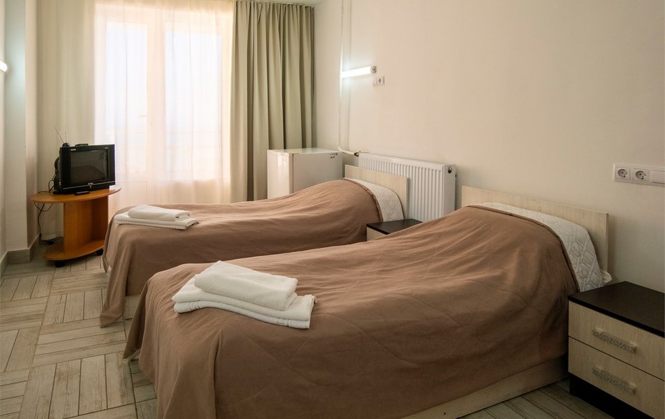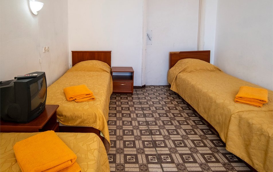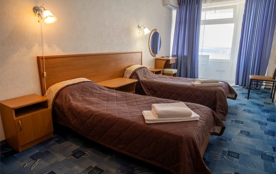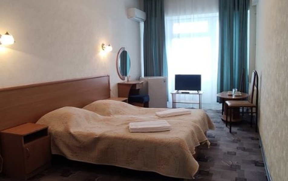 Семиэтажный корпус рассчитан на 306 мест. Построена здравница со 168 номерами эконом-класса в 1997 году, а после реновации в 2015-м в ней появились более комфортабельные номера: к «стандарту» добавился «улучшенный». В одно- и двухместных номерах с видом на Ай-Петри или море есть холодильники, телевизоры и санитарные удобства, однако горячая вода подается по графику.