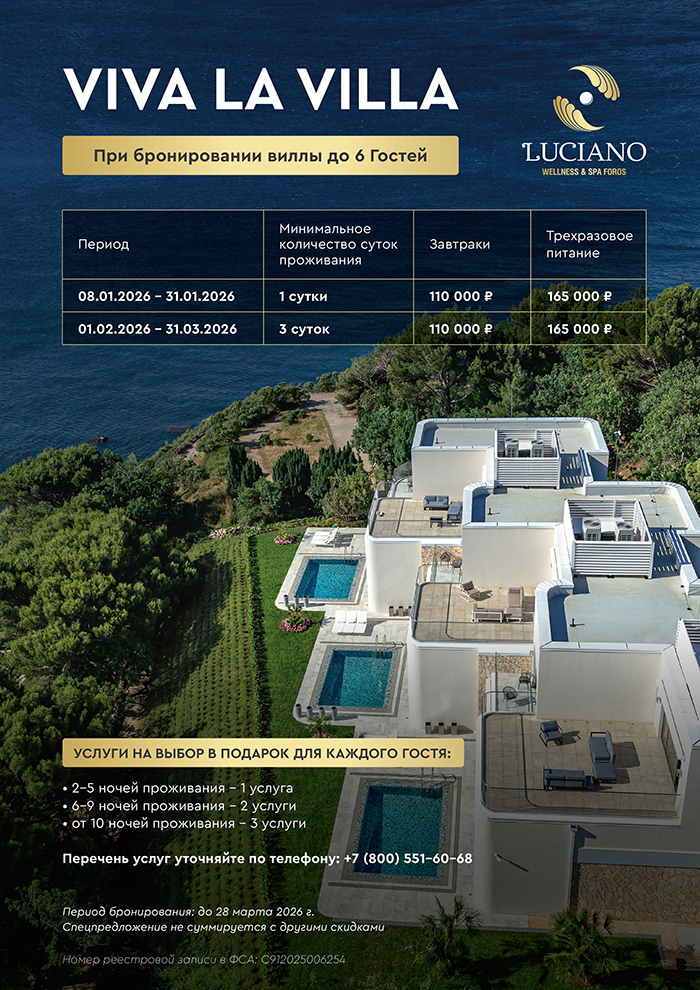 LUCIANO Wellness & SPA Foros 5*– победитель премии Russian Hospitality Awards в номинации «Лучший отель превентивной медицины» в 2023 году.