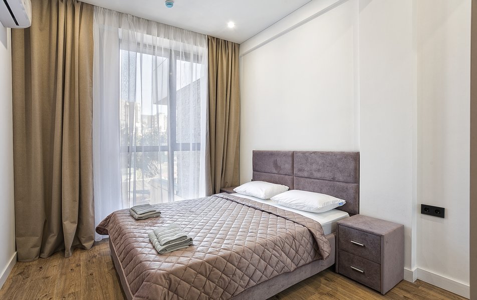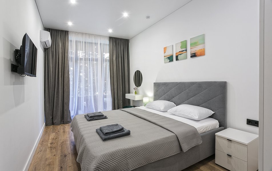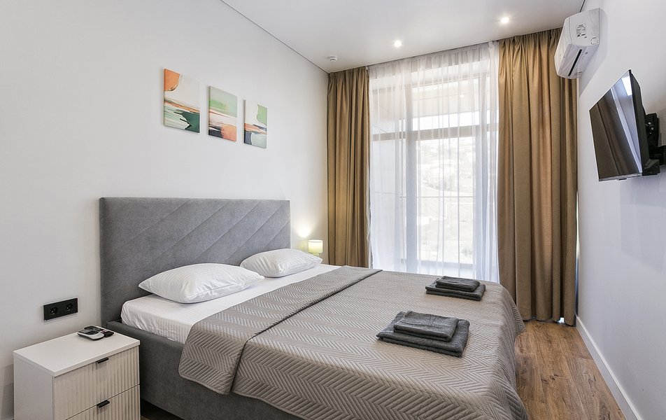 В комплексе представлен широкий выбор планировочных решений — от уютных студий площадью 30 квадратных метров до просторных четырёхкомнатных апартаментов площадью 120 квадратных метров. Все пространства продаются с отделкой. Террасы, балконы и панорамное остекление позволяют в полной мере оценить впечатляющие видовые характеристики локации. Каждый апартамент оснащён кондиционером, телевизором, холодильником, санузлом с душевой, феном, набором полотенец и гигиеническими принадлежностями. Предусмотрены чай, кофе, бутилированная вода и беспроводной интернет. Постельное бельё включено в подготовку к заезду.