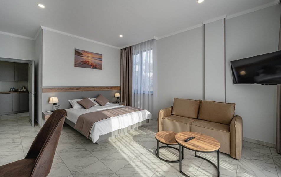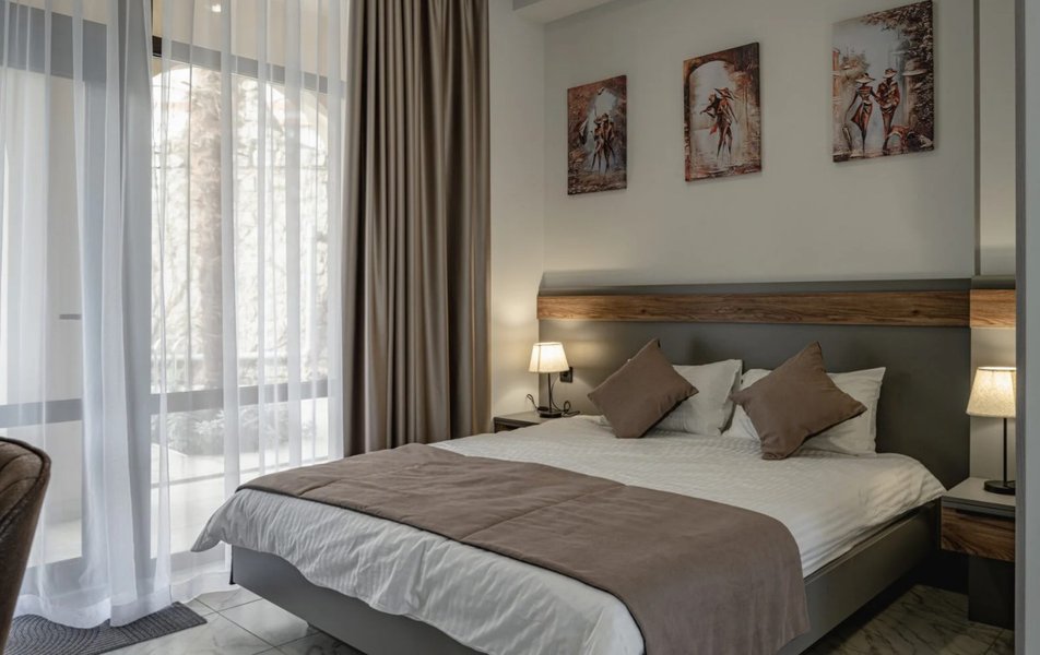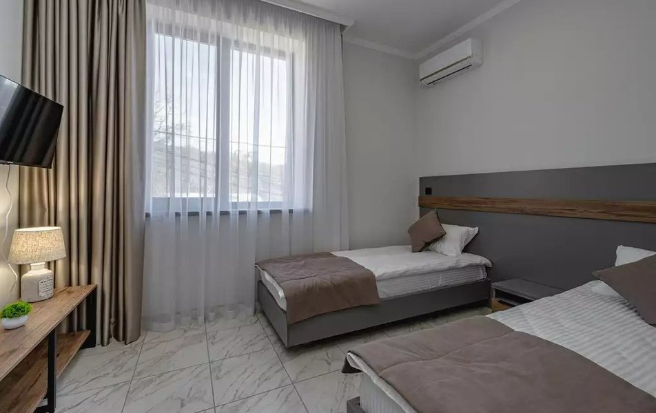 Комфортабельные номера, оформленные в светлых, южных тонах, оборудованы всем необходимым для современного человека. После дня, наполненного впечатлениями от прогулок по Ялте, посещения дворцов или горных троп, гости возвращаются в свой тихий уголок. Они могут насладиться отдыхом в ухоженном дворе, где ароматы крымских растений смешиваются с морским бризом, или поделиться впечатлениями за чашечкой кофе на террасе.
