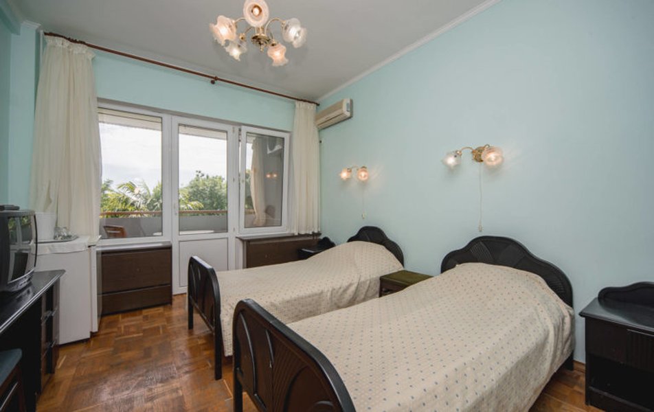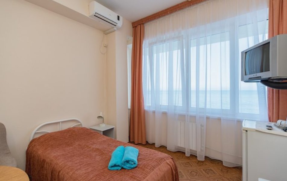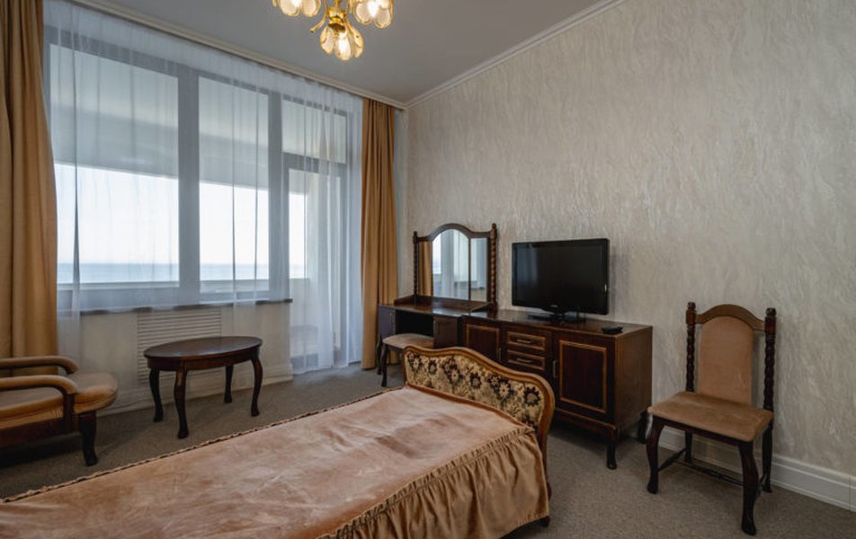 Гостям предлагаются номера эконом-класса с бесплатным Wi-Fi в санаторных холлах. К услугам отдыхающих – два бассейна: крытый (с морской водой, гидромассажем, подводными гейзерами и водопадом) и сезонный (пресноводный). Есть русская баня, аптека, бильярд, библиотека,теннисный корт, спортплощадки, кинозал, летний театр, охраняемая автостоянка и экскурсбюро.