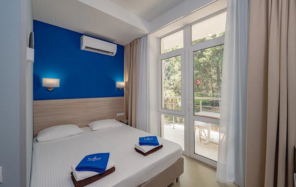 В целом отель «Усадьба Голубой Залив» в Крыму предоставляет 99 номеров для комфортного проживания гостей отеля. Все номера гостиницы укомплектованы необходимой мебелью. В каждом – собственный санузел с просторной ванной или душем. Все номера оснащены кондиционерами, ТВ и Wi-Fi, мини-баром и сейфом, другими удобствами. Для удобства гостей предусмотрены ортопедические матрацы.