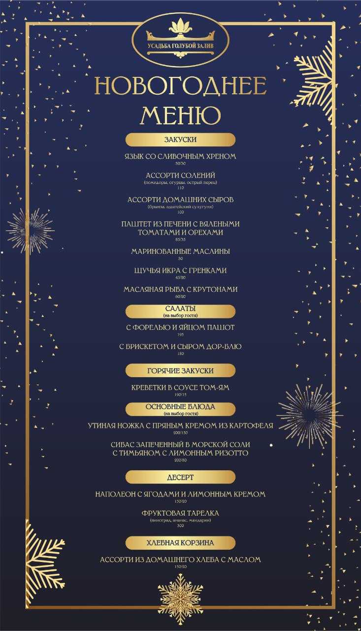 • Предпраздничный ужин 31 декабря — изысканные блюда от нашего шефа, созданные с любовью.