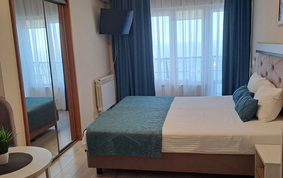 Корпус гостевого дома разместился на первой береговой линии, поэтому из окон открываются красивые виды на море. В распоряжении гостей комфортабельные номера с удобствами. В каждом есть собственная мини-кухня, оснащенная посудой и техникой, а также кондиционер, плазменный телевизор и сеть wi-fi. Некоторые комнаты оборудованы небольшой меблированной террасой.