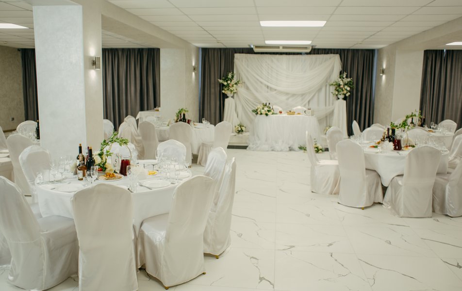 Просторный зал в светлых тонах идеально подойдет для проведения вашего торжества.