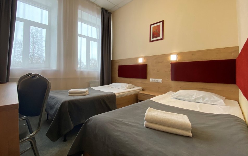 3-х этажный корпус отеля разместился на закрытой территории рядом с улицей Красноармейской — одной из главных магистралей района. Жилой фонд, способный принять более 120 человек единовременно, предлагает гостям номера разной категории — Эконом, Стандарт, Полулюкс, Студио, Бизнес. В каждом номере независимо от категории имеется индивидуальный санузел, электрочайник, плазменный телевизор. Некоторые номера оснащены кондиционерами.
