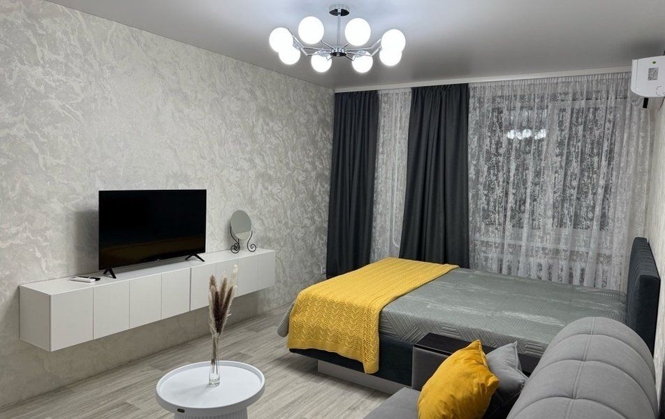Светлые и уютные апартаменты оформлены в современном стиле с качественной отделкой и рассчитаны на комфортное размещение гостей. В распоряжении гостей — полноценные зоны для сна и отдыха. Пространство продумано до мелочей: в апартаментах имеется вся необходимая бытовая техника, включая стиральную машину, плиту, холодильник, микроволновую печь и чайник. Гостям предоставляются телевизор, беспроводной интернет, фен, утюг с гладильной доской, а также свежие комплекты постельного белья и мягкие махровые полотенца. На кухне гостей ждет полный набор посуды и кухонных принадлежностей, позволяющий с комфортом готовить еду.