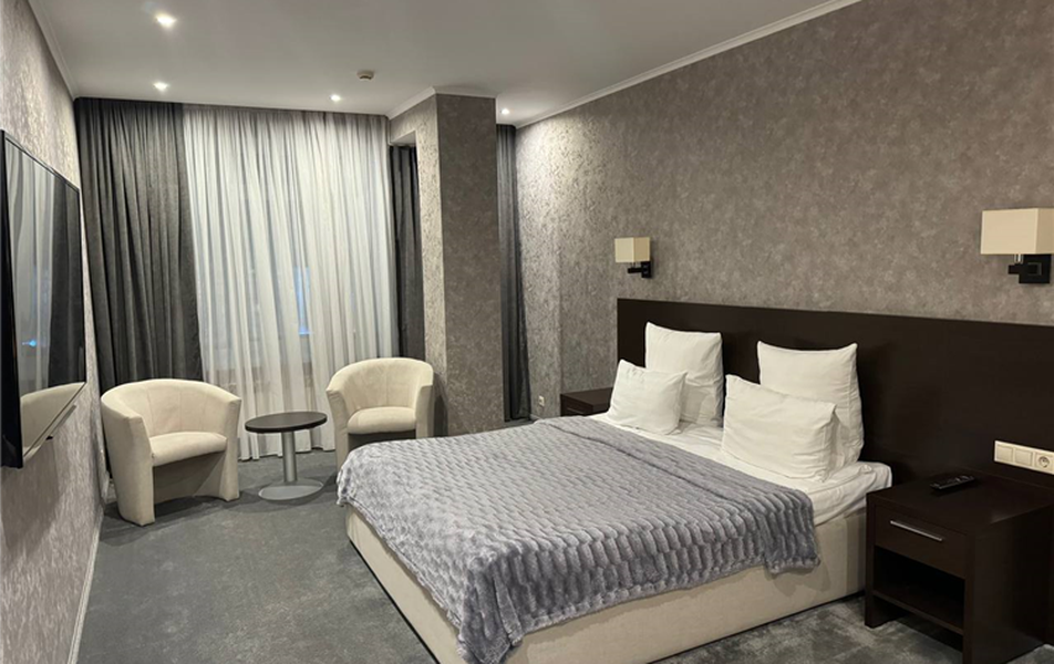 6-ти этажное здание отеля состоит из 57 номеров только высшей категории комфорта. Стильные, функциональные номера, отвечающие европейским стандартам, укомплектованы качественной мебелью и необходимой бытовой техникой – кондиционерами, телевизорами, холодильникам, фенами.