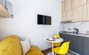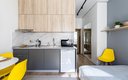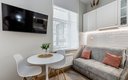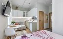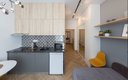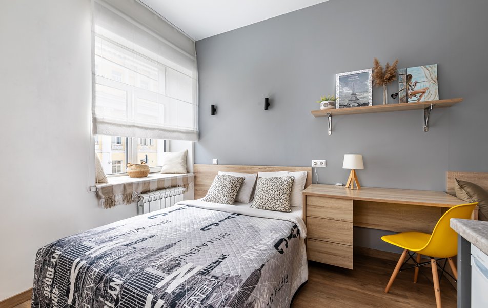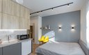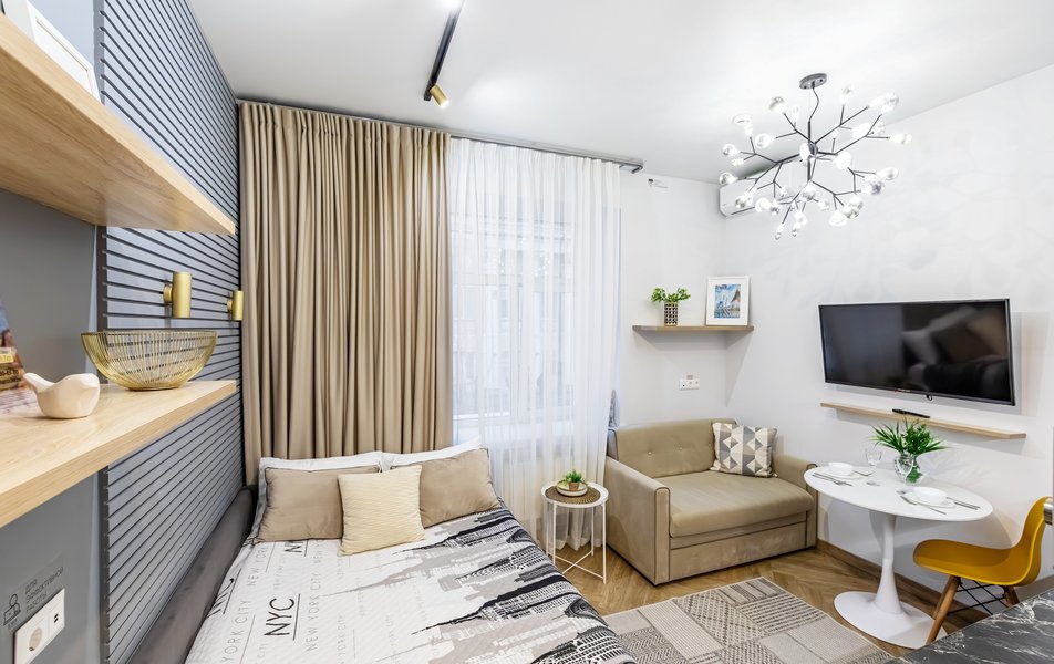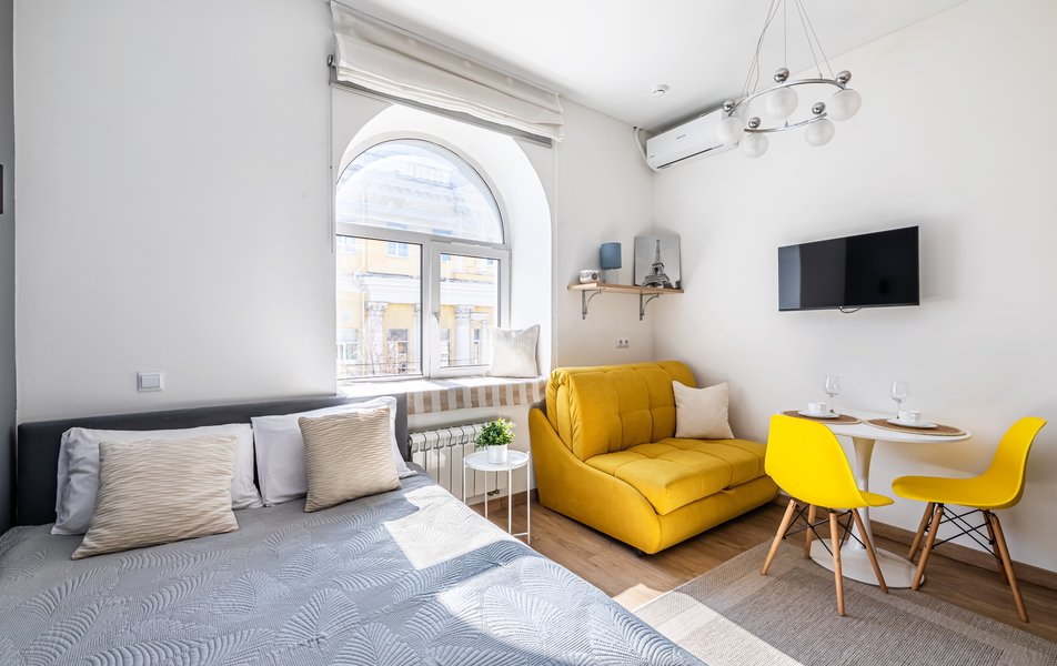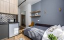 Гостям предлагается несколько категорий стильных студий, каждая из которых рассчитана на комфортное размещение до четырёх-пяти человек. Интерьеры выполнены в современном дизайне с использованием спокойных тонов, создающих атмосферу уюта и расслабления. В распоряжении гостей — широкие двуспальные кровати, односпальные кровати, двухспальные диваны-кровати с ортопедическими матрасами, а также дополнительные подушки и одеяла. В каждом номере есть обеденный стол, вместительный шкаф или комод, вешалка, телевизор и кондиционер. Для работы предусмотрена отдельная зона в некоторых категориях. Кухня полностью оборудована всем необходимым для приготовления еды. В ванной комнате — душевая кабина, стиральная машина, фен, тапочки, зубные щётки с пастой и разнообразные туалетно-косметические принадлежности. На всей территории работает Wi-Fi.
