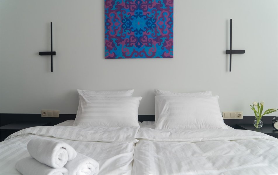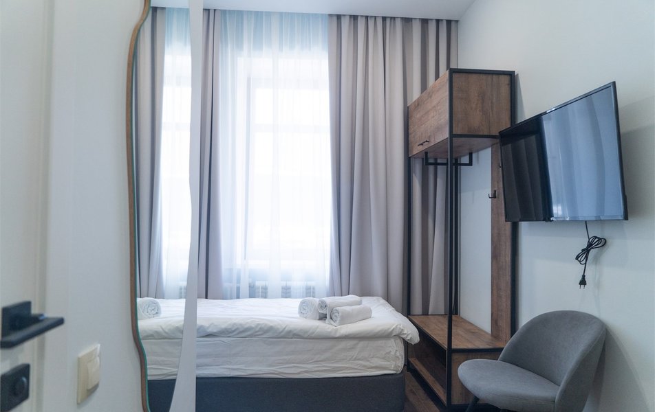 Для размещения предлагаются номера нескольких категорий, различающихся по площади, планировке и вместимости. Имеются компактные одноместные номера, а также двухместные варианты с раздельными или двуспальными кроватями. Все номера оснащены ортопедическими матрасами, солнцезащитными шторами, чайной станцией, чай, сахар, бутилированная вода. В оформлении интерьеров использованы элементы, отсылающие к культурному наследию Татарстана.