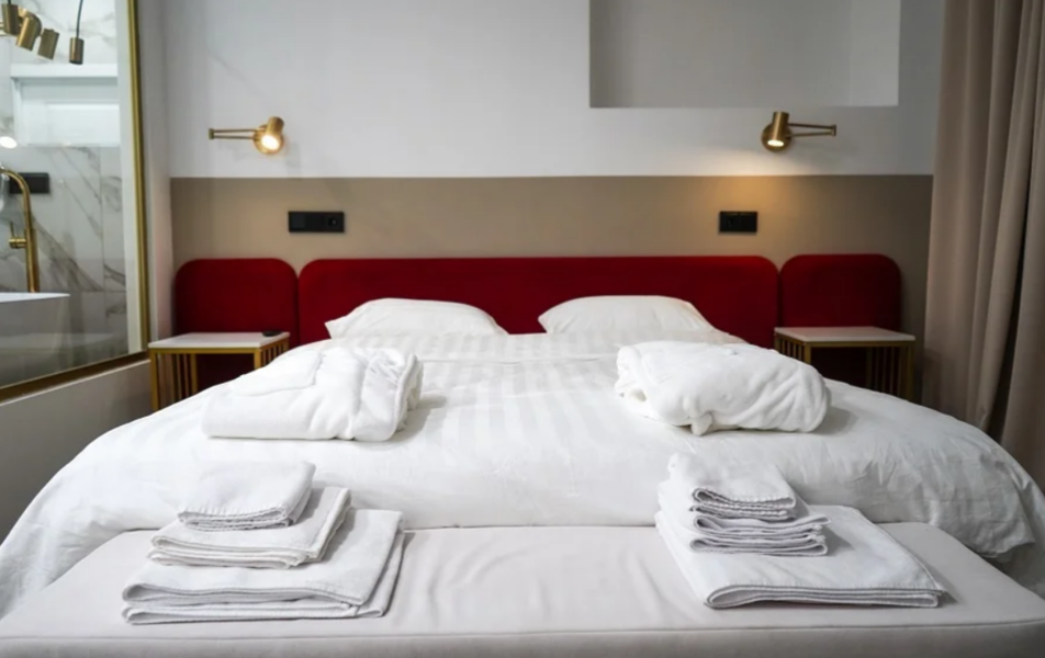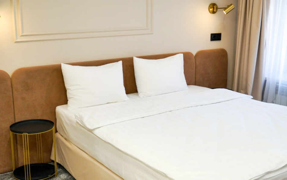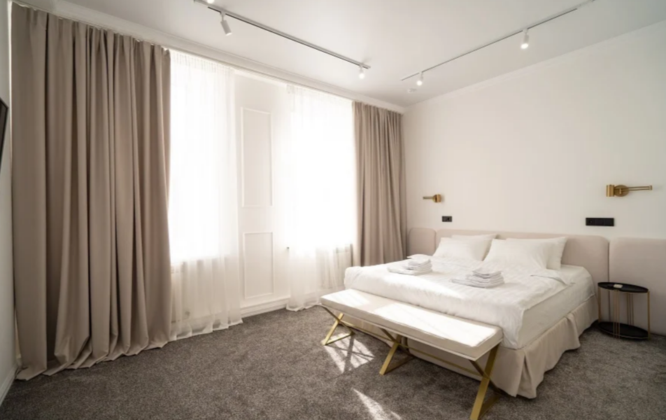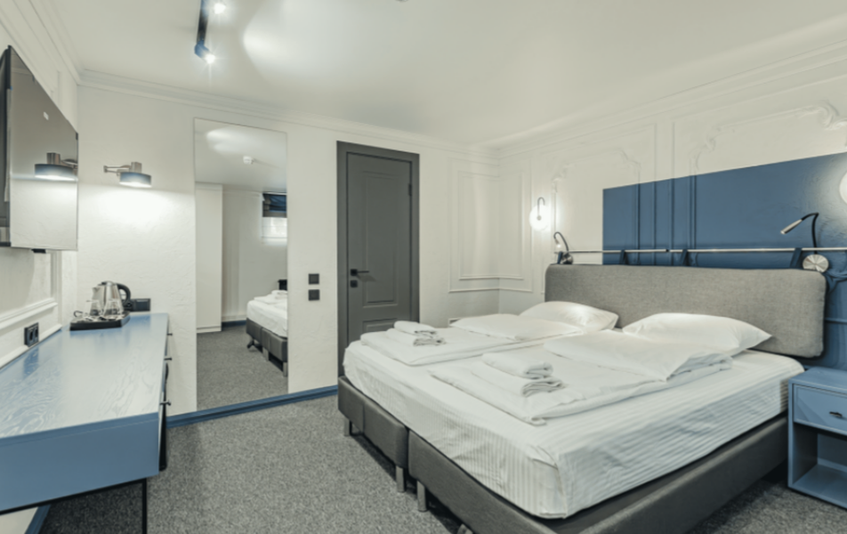 Гостиница размещается в отдельном многоэтажном здании с лифтом и благоустроенной входной группой. Номерной фонд оформлен в современном стиле с акцентом на спокойную цветовую гамму и функциональность пространства. В распоряжении гостей номера с собственными ванными комнатами, телевизорами, кондиционерами, рабочими зонами и Wi-Fi. Интерьеры выдержаны в лаконичной эстетике городского отеля, создающей атмосферу уюта и приватности в центре динамичной Казани.