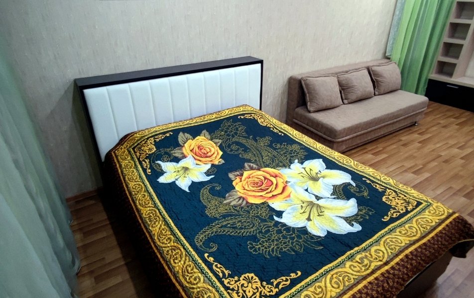 Просторная однокомнатная планировка с отдельной кухней и балконом рассчитана на размещение до четырёх человек. В спальне установлена удобная кровать King-size, а в гостиной — диван-софа, обеспечивающие два отдельных спальных места. Кухня полностью оборудована всем необходимым для приготовления еды: электрическая плита, духовой шкаф, мультиварка, микроволновая печь, холодильник, чайник и полный набор посуды. В ванной комнате — стиральная машина, фен и средства гигиены. Гостей ждут свежее постельное бельё из прачечной, мягкие полотенца, утюг с гладильной доской. В апартаментах есть кондиционер, телевизор со Smart TV и бесплатный Wi-Fi.