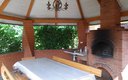 Двухэтажный деревянный сруб на каменном цоколе располагается на закрытой благоустроенной территории площадью 2000 кв.м. Гостей ожидают двухместные номера категории Стандарт и Люкс. В каждом есть собственный санузел с душем или ванной, кондиционер, телевизор, электрочайник.