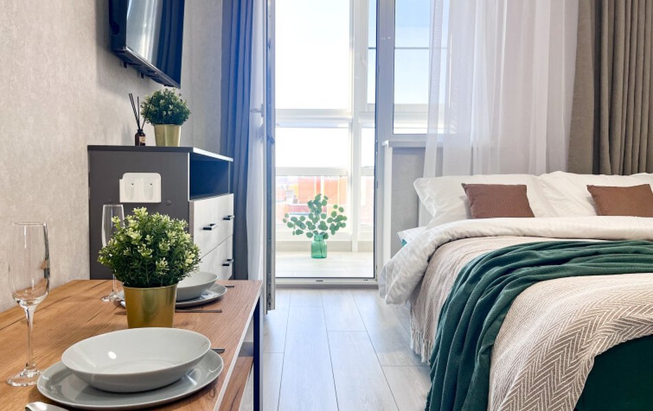 | Оборудование | кондиционер микроволновая печь мини-холодильник набор посуды плита электрическая стиральная машина телевизор чайник |