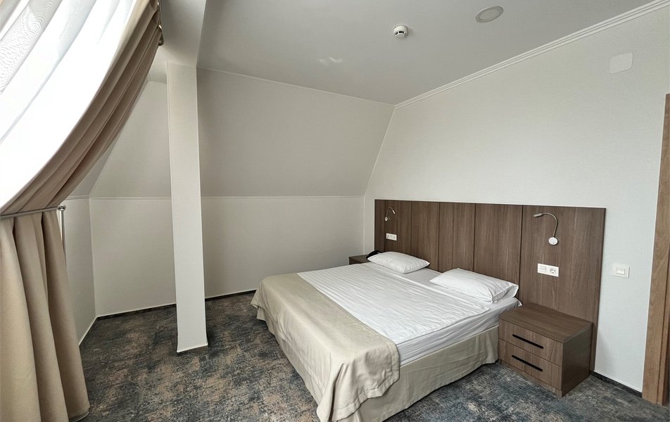Двухэтажный корпус отеля с дополнительным мансардным этажом находится на пересечении Атаманской и Комитетской улиц. Небольшой жилой фонд, рассчитанный на 56 человек, предлагает гостям двухместные номера категории Стандарт, Джуниор и Сьют. В номерах классический интерьер, выдержанный в пастельных тонах. В каждой комнате есть санузел с душем или ванной, сплит-система, телевизор, холодильник.