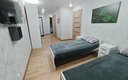 Просторные апартаменты с новым дизайнерским ремонтом вмещают до шести гостей, в распоряжении отдыхающих шесть отдельных кроватей. Пространство оснащено всем необходимым для комфортного проживания: работает бесплатный Wi‑Fi и смарт‑ТВ, установлена сплит‑система для поддержания приятной температуры. На кухне есть газовая панель, микроволновая печь и холодильник с морозильной камерой, а также полный набор посуды, чайник и прочие принадлежности для приготовления и приёма пищи. В ванной комнате предусмотрен душ с бесперебойной подачей горячей воды, фен и средства личной гигиены. К услугам гостей — стиральная машина‑автомат, утюг с гладильной доской и сушилка. Для удобства гостей подготовлены свежее постельное бельё, а также чай, кофе и сахар.