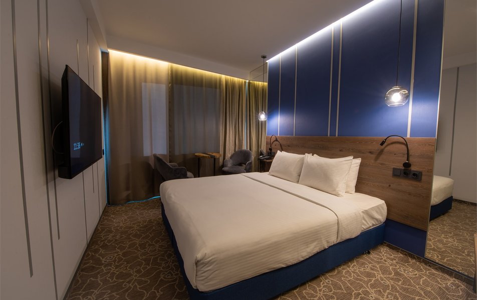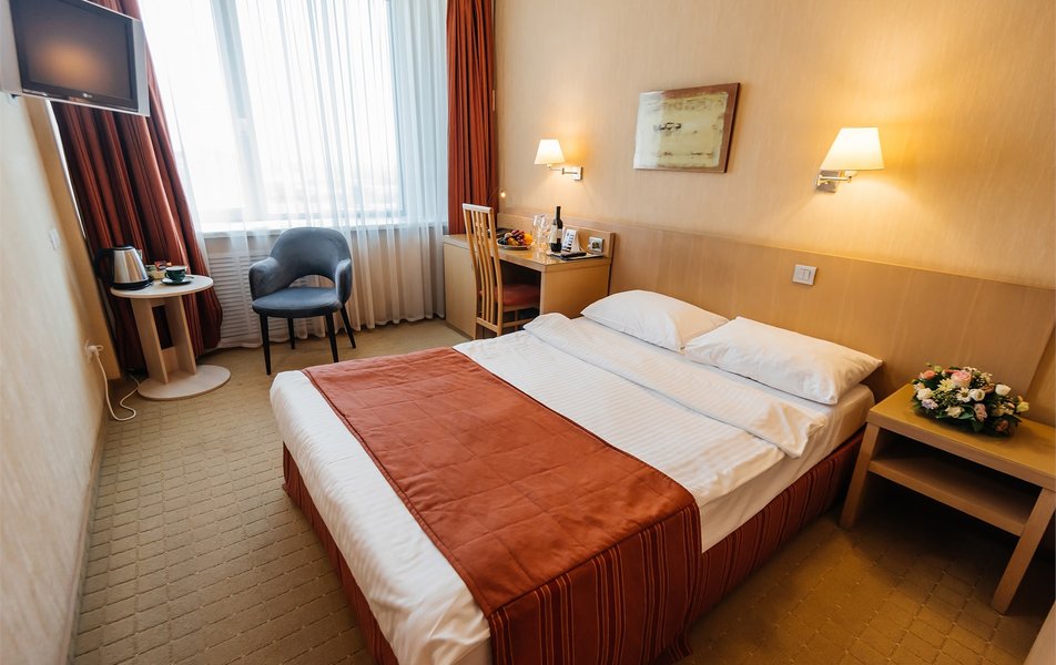 В отеле имеется 254 комфортабельных номера, оформленных в современном стиле и оборудованных новой удобной мебелью и техникой, обеспечивающей приятное и комфортное проживание. Wi-Fi позволит всегда быть на связи и следить за мировыми новостями. Лобби-бар и главный ресторан предлагают разнообразие европейских блюд, а утром подают сытные завтраки из свежих продуктов. Также в здании работает кафе, где можно пообедать или поужинать.