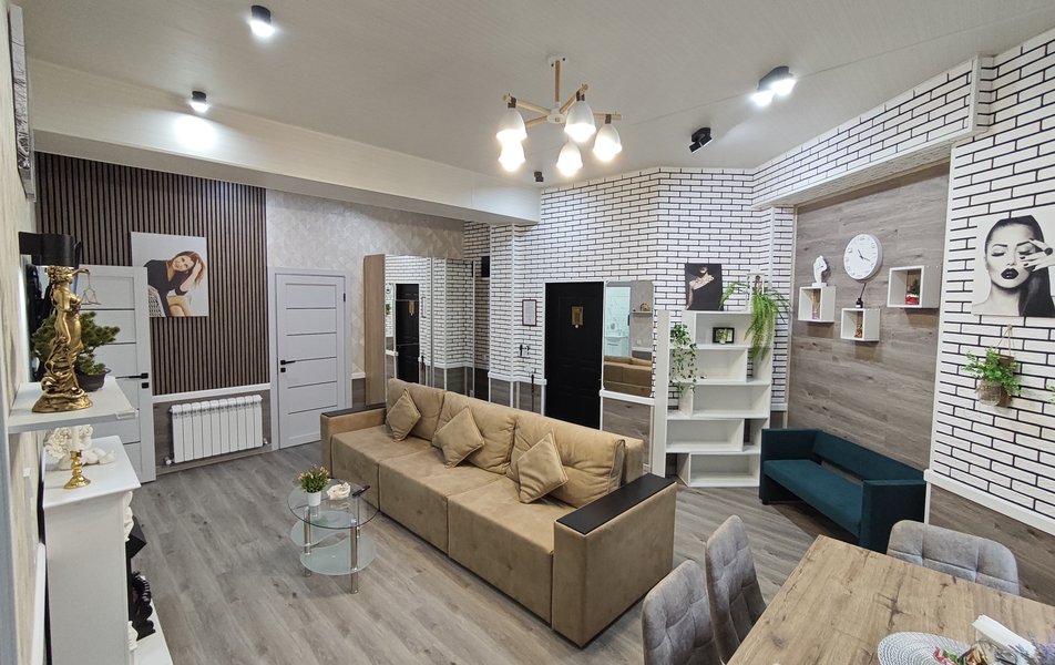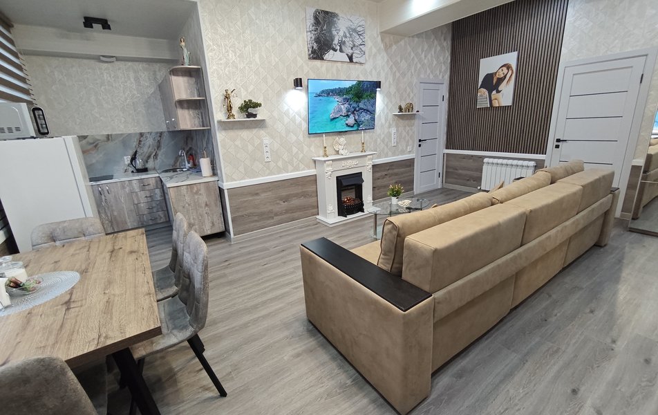 Апартаменты расположены в самом центре города Шахты. Рядом с домом сосредоточена вся необходимая инфраструктура: продуктовые магазины, остановки общественного транспорта, а также предусмотрена удобная парковка для автомобиля. Внутри гостей ждет продуманное до мелочей пространство, где каждая деталь работает на создание особого настроения. В гостиной зоне установлен эффектный камин и огромный модульный диван, а спальня порадует истинных ценителей качественного отдыха king-size кроватью (180х200 см) с ортопедическим матрасом.