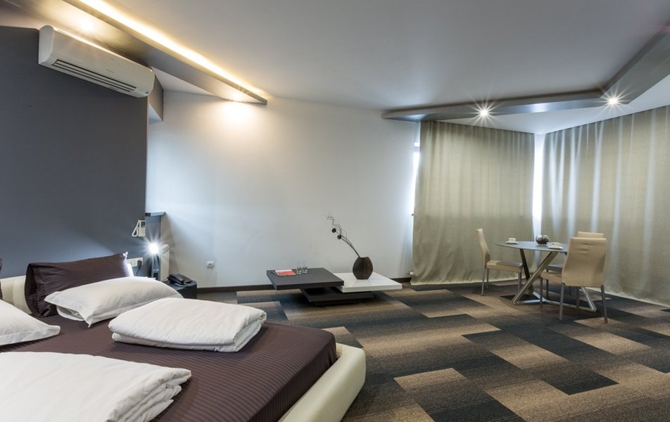 | Оборудование | кондиционер микроволновая печь мини-холодильник набор посуды сейф телевизор чайник |