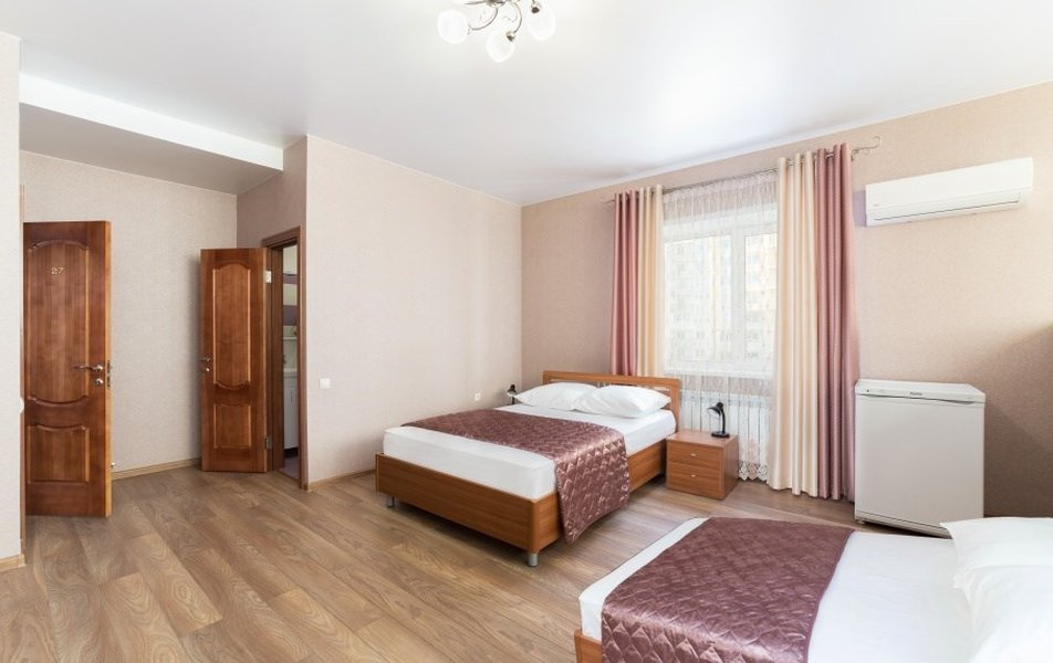 Номера оборудованы удобными кроватями с ортопедическими матрасами. Во всех номерах имеется санузел с душевой кабиной, ЖК-телевизор с кабельным ТВ, журнальный столик, гардеробный шкаф, прикроватная тумбочка, электрический чайник и посуда. В каждом номере есть кондиционер и отопление. Вместимость номеров в зависимости от типа — от 2 до 5 гостей.