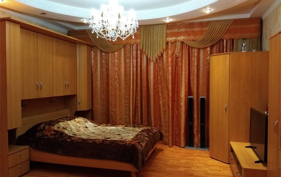 | Мебель | вешалка зеркало кровать двуспальная прикроватные тумбочки стол стулья тумба под телевизор шкаф |