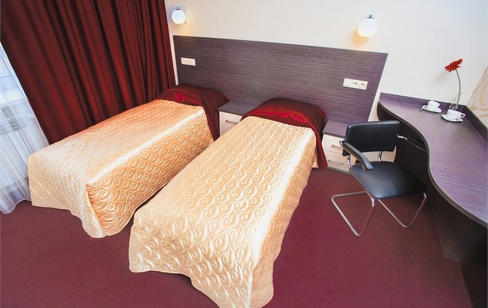 Четырехэтажное здание отеля, оснащенное лифтом, разместилось на первой береговой линии в начале знаменитой Самарской набережной. Жилой фонд, рассчитанный на единовременное размещение более 100 гостей, включает номера категории Стандарт, Комфорт и Люкс. Комнаты хорошо меблированы, есть спальный гарнитур, вместительный шкаф, письменный стол. Каждый номер оснащен санузлом с ванной или душем, необходимой бытовой техникой, кондиционером и набором посуды.
