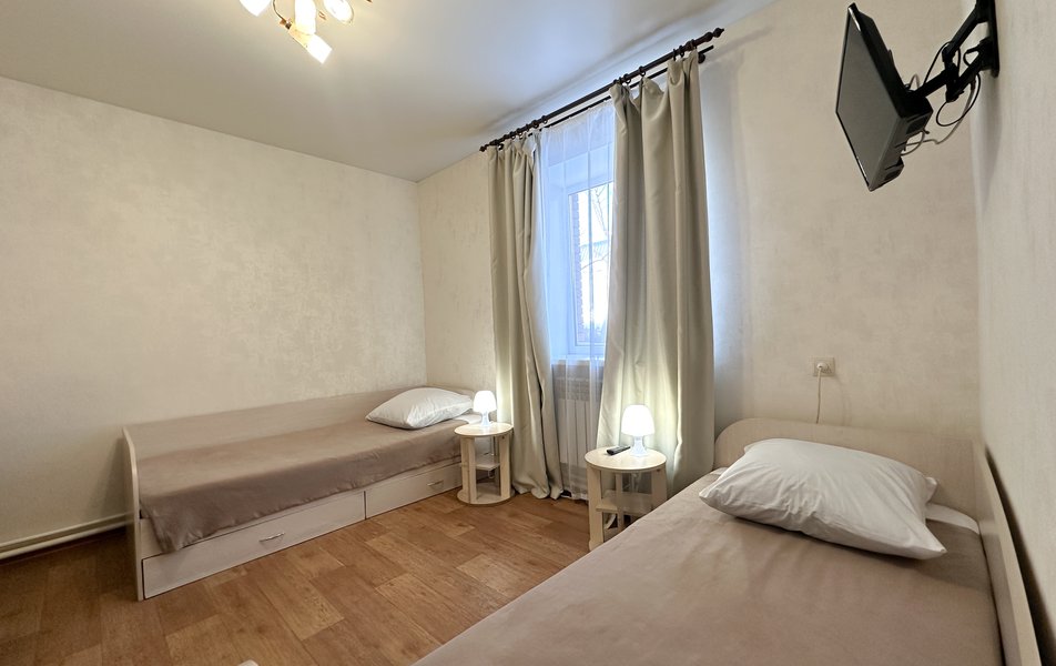 Кирпичное двухэтажное здание гостевого дома занимает небольшую закрытую территорию среди частного сектора. Гостей ожидают уютные одноместные и двухместные номера с удобствами. В каждом номере есть мини-кухня с электроплитой и необходимой посудой и ванная комната с душем. Среди бытовой техники в номерах встречаются плазменный телевизор, фен, электрочайник, в некоторых комнатах установлены кондиционеры.