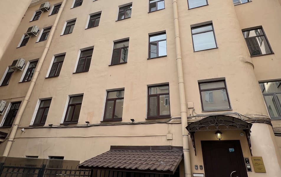 Небольшой городской отель «Алегрия» расположился в четырёхэтажном здании у Московского проспекта, в трёх минутах пешком от станции метро «Технологический институт», в тихом квартале рядом с Троицким собором и набережной Фонтанки. Отсюда легко уйти в город — вдоль реки, мимо старинных решёток и садов, — и так же легко вернуться: в номер, где тепло, светло и всё продумано для спокойного отдыха.