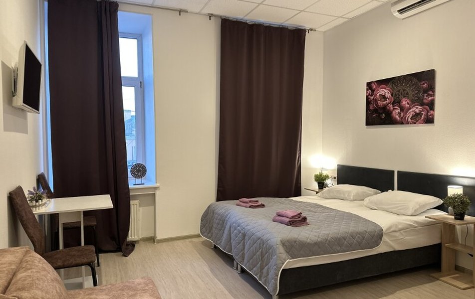Стандартный двухместный номер с двуспальной кроватью, оборудованный всем необходимым для комфортного проживания: ЖК телевизор, собственная ванная комната с душевой кабиной, раковиной и туалетом. Гостям предоставляется постельное белье, полотенца, доступ к интернету.